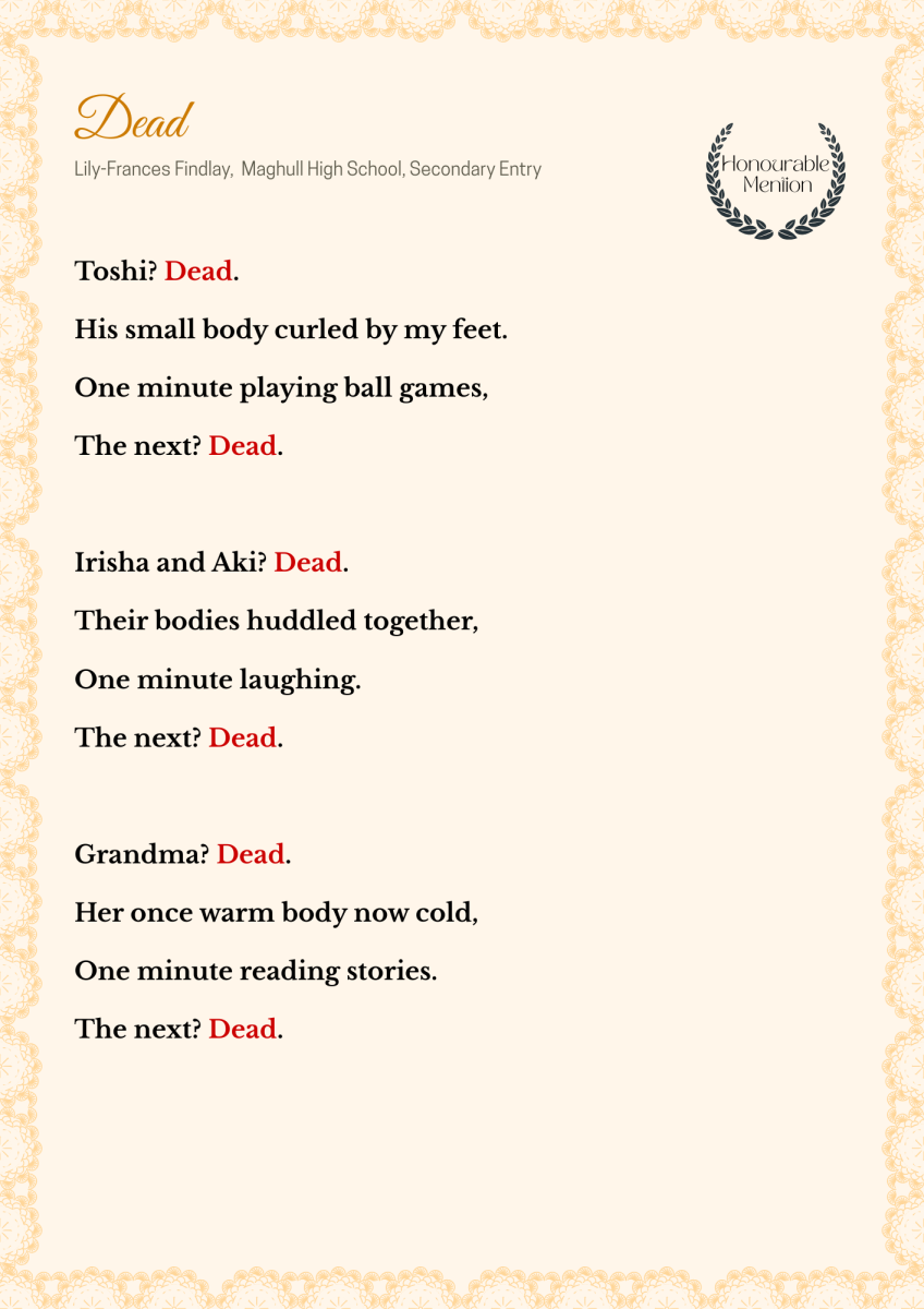 We were incredibly impressed by the entries, and are pleased to announce the winners, who will be celebrated at an event in London where they will get the opportunity to recite their poems! Find below the winning poems along with the judges’ comments.