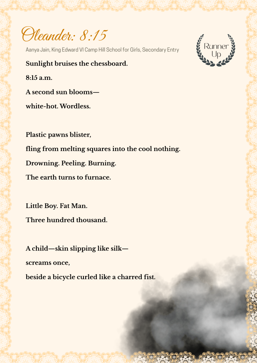 Earlier in the year, we did a nation wide call out for students to submit original poems to commemorate the 80th anniversary of the bombings of Hiroshima and Nagasaki. Our competition was judged by poet and CND Peace Education patron Antony Owen along with poet and publisher Aaron Kent.
