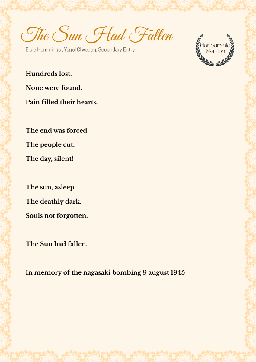 Earlier in the year, we did a nation wide call out for students to submit original poems to commemorate the 80th anniversary of the bombings of Hiroshima and Nagasaki. Our competition was judged by poet and CND Peace Education patron Antony Owen along with poet and publisher Aaron Kent.