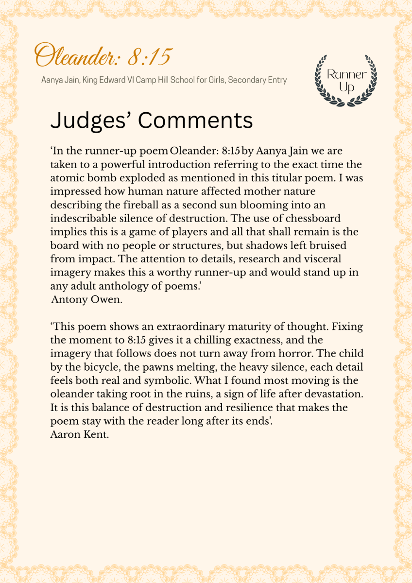 Honourable Mention – Isabel Webster, Stafford Grammar School
