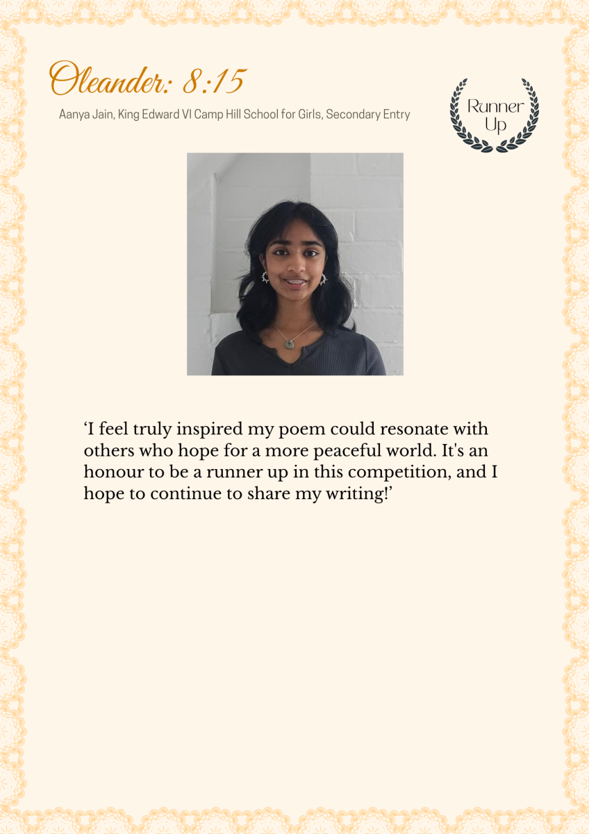 Runner Up – Aanya Jain, King Edward VI Camp Hill School for Girls